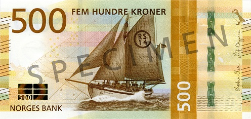 据挪威银行称,新的50克朗和500克朗纸币于2018年10月18日发行。直到2019年10月18日,仍然可以使用以前系列的50克朗和500克朗的纸币。