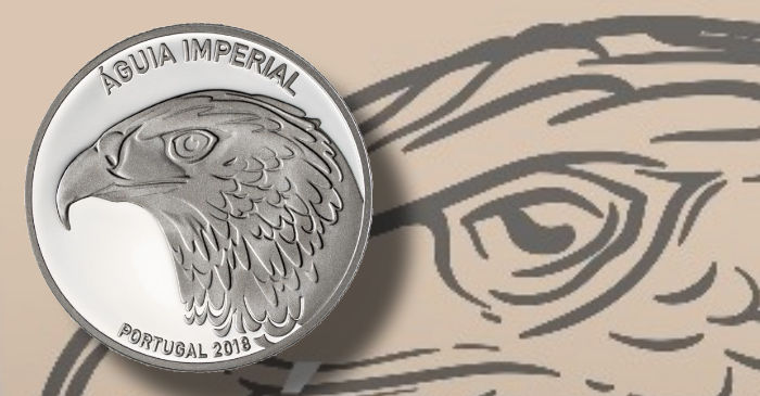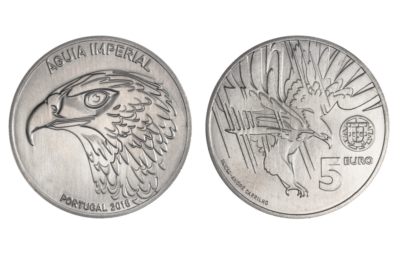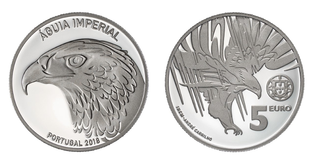 这枚硬币是由安德烈·卡里略设计的,卡里略描绘了伊比利亚帝国鹰头朝右的形象。文字AGUIA帝国是放在上面的初步设计与附加文本葡萄牙2018年放在下面。