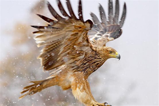 白肩雕(学名:Aquila heliaca)又名御雕,是隼形目鹰科雕属的大型猛禽。体长73-84厘米。体羽黑褐色,头和颈较淡,肩部有明显的白斑。人们以前认为西班牙白肩雕(Aquila heliacal adalberti)和白肩雕属于同一个物种,如今由于二者在形态学、生态学和特征的不同而被分成两个不同的种类。西班牙白肩雕又被称为“帝国之鹰”,是一个濒临灭绝的物种,它只生活在伊比利亚半岛和摩洛哥西北部的一些山区里。目前在西班牙,白肩雕只剩下不到200对。普遍被生物界专业人士评为地球上濒临灭绝的“第四大禽类”。