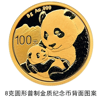 (三)8克圆形金质纪念币为普制币,含纯金8克,直径22毫米,面额100元,成色99.9%,最大发行量600000枚。