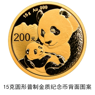 (四)15克圆形金质纪念币为普制币,含纯金15克,直径27毫米,面额200元,成色99.9%,最大发行量600000枚。