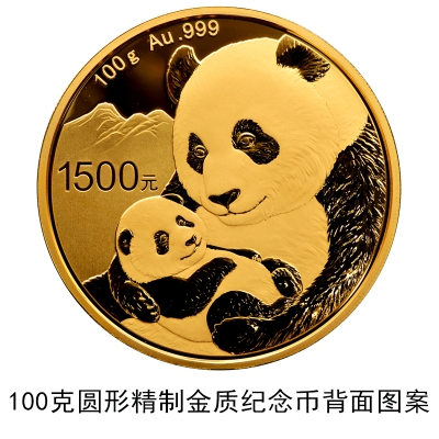 (七)100克圆形金质纪念币为精制币,含纯金100克,直径55毫米,面额1500元,成色99.9%,最大发行量10000枚。