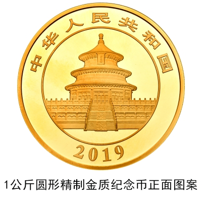 (九)1公斤圆形金质纪念币为精制币,含纯金1公斤,直径90毫米,面额10000元,成色99.9%,最大发行量500枚。