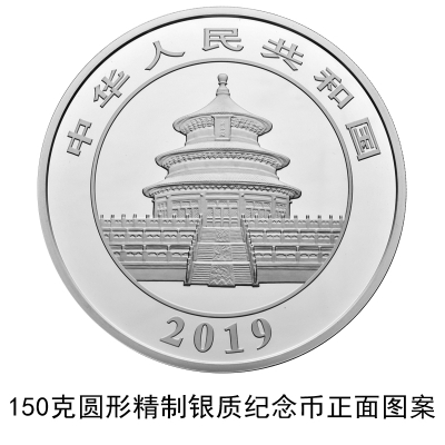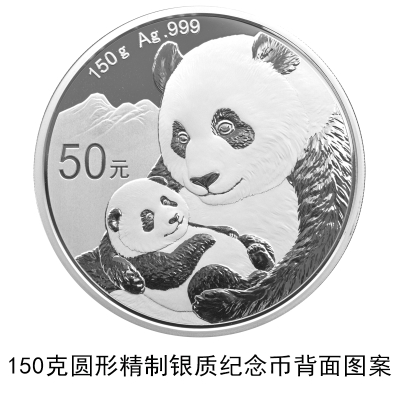 (十一)150克圆形银质纪念币为精制币,含纯银150克,直径70毫米,面额50元,成色99.9%,最大发行量60000枚。