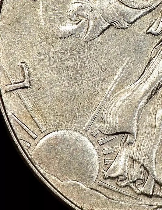 造假者改刻了一枚1946年行走自由女神真币上的年号,使它看起来像热门的低产量1916年版。
