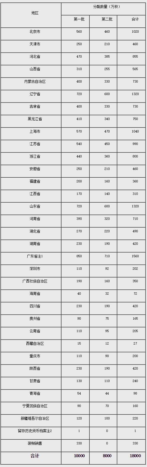 3.中国人民银行可能根据各地预约情况对各省、自治区、直辖市的分配数量进行调整,调整结果将另行公布。
