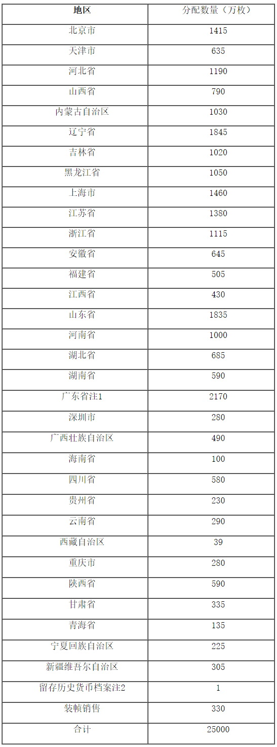 3.中国人民银行可能根据各地预约情况对各省、自治区、直辖市的分配数量进行调整,调整结果将另行公布。