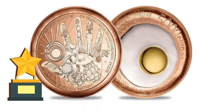 第一名:法国“盖伊·萨瓦餐厅”金币,该枚金币同时获得了最佳艺术奖第二名。