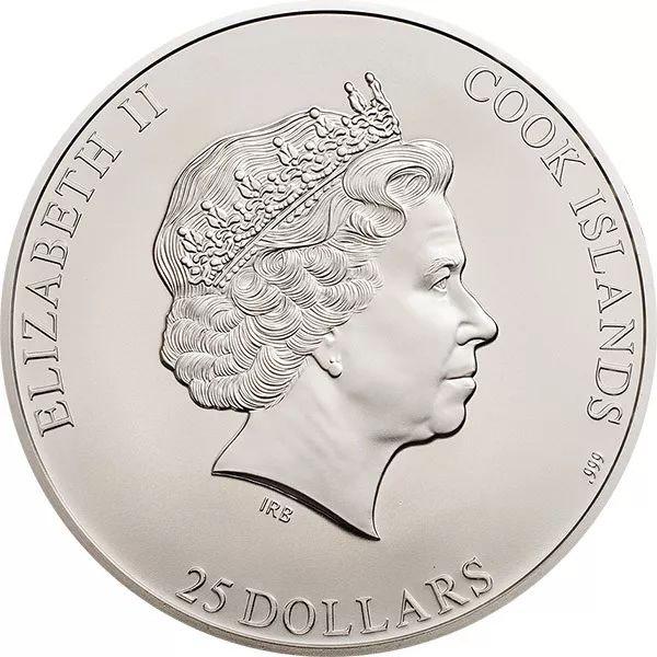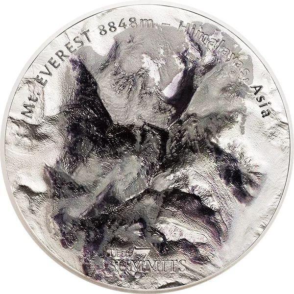 第二名:库克群岛“珠穆朗玛峰”银币。该币成色为99.9%,重量为5盎司,直径为65毫米,面额为25元,最大发行量为777枚。背面图案为世界最高峰——珠穆朗玛峰的鸟瞰图。该币运用高浮雕技术,以不同寻常的鸟瞰视角展示了珠穆朗玛峰,每个冰原、冰川和悬崖都可以展现出非常高的细节。