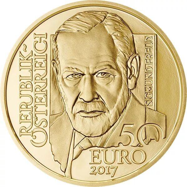 第二名:奥地利“西格蒙德·弗洛伊德”金币。该币成色为98.6%,重量为7.79克,直径为22毫米,面额为50欧元,最大发行量为20000枚。正面图案为摄影师费迪南德·施穆策于1926年创作的弗洛伊德肖像。背面图案表现了弗洛伊德的“快乐原则”。该币是“维也纳心理治疗学院”系列硬币的第一枚。弗洛伊德(1856-1939年)是奥地利精神分析师、精神病学家和神经病学家、精神分析的创始人,它对20世纪的心理学、医学、社会学、人类学、文学和艺术产生了重大影响。弗洛伊德的“快乐原则”认为整个精神机关的基本促进动力,来自没有得到满足的愿望或者没有得到平息的激动——一个释放由此而产生的未满足感(不快)的愿望,从而消解紧张,得到快乐。