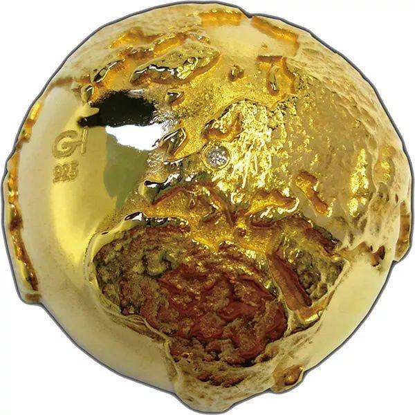 第一名:纽埃“3D金色钻石地球”银币。该币材质为银镀金,成色为92.5%,重量为56.7克,直径为26毫米,面额为2元,最大发行量为400枚。该币为球形,按照地球的地形进行高浮雕雕刻,最高浮雕距离达到1.2毫米,并手工嵌入一枚0.56克拉的钻石,同时配有伊丽莎白二世女王肖像。