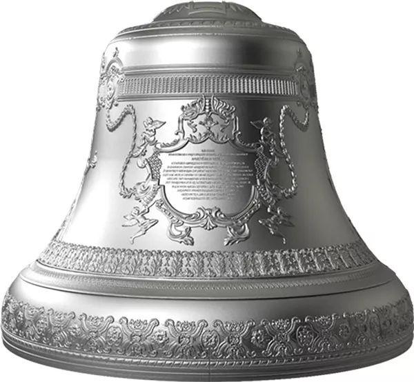 第一名:纽埃“沙皇钟”银币。该币成色为99.9%,重量为4盎司,直径为40毫米,高度为33毫米,面额为10元,最大发行量为999枚。沙皇钟位于俄罗斯首都莫斯科克里姆林宫前,是世界最大的钟,重达216吨,高6.14米,直径6.6米。该币为钟罩形状,钟罩表面有沙皇阿列克谢、皇后安娜、巴洛克天使、圣徒椭圆形徽章等浮雕图像。钟罩内部有伊丽莎白二世女王肖像图案。