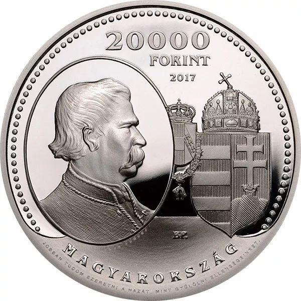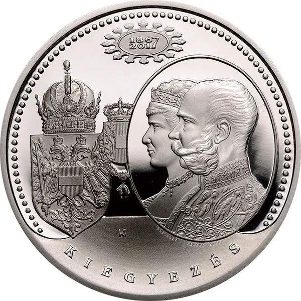第二名:匈牙利“奥匈帝国妥协150周年”银币。该币成色为92.5%,重量为77.76克,直径为76.5毫米,面额为20000福林,最大发行量为5000枚。正面图案为戴阿克·费伦茨肖像。正面下方的微缩文字是戴阿克的政治口号:我热爱我们的祖国胜过憎恨我们的敌人。戴阿克是匈牙利著名政治家,被称作“匈牙利的智者”,推动1867年奥匈妥协方案的实行。背面图案为弗朗茨·约瑟夫一世和伊丽莎白皇后的肖像。弗朗茨·约瑟夫一世是奥地利皇帝兼匈牙利国王,也是奥匈帝国缔造者和第一位皇帝。1867年6月8日,他与匈牙利贵族达成和解,加冕为匈牙利国王,建立了奥匈帝国。1867年的妥协重新建立了奥地利帝国与匈牙利王国之间的政治、法律和经济关系,并形成了奥匈帝国的双重君主制。
