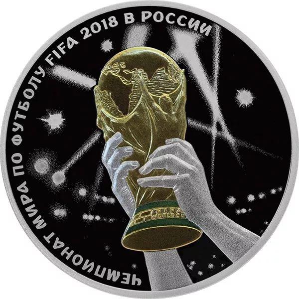 第一名:俄罗斯“2018年FIFA俄罗斯世界杯”银币。该币成色为92.5%,重量为33.94克,直径为39毫米,面额为3卢布,最大发行量为12000枚。背面图案为双手捧起镀金的FIFA世界杯奖杯,并且标注“2018年FIFA俄罗斯世界杯”文字信息。