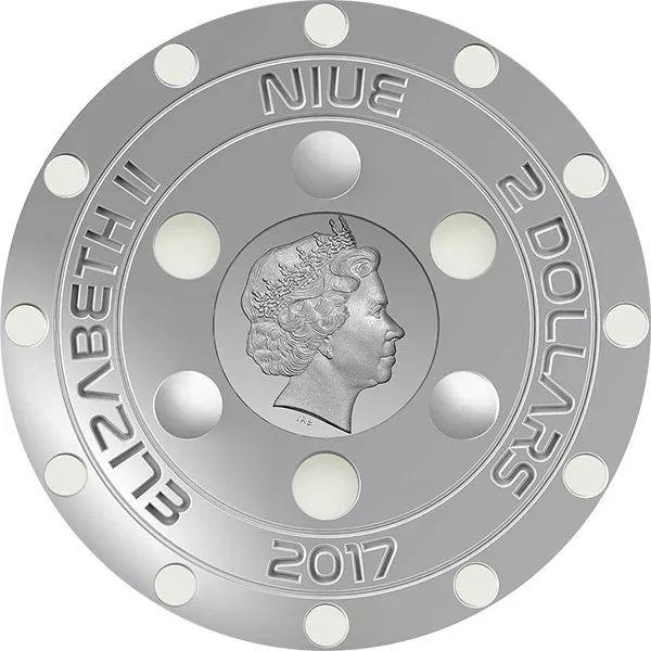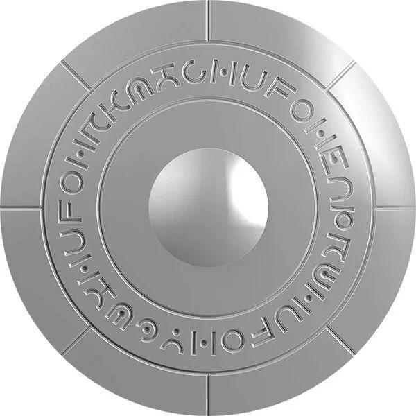第二名:纽埃“罗斯威尔事件70周年”银币。该币成色为92.5%,重量为40克,直径为40毫米,面额为2元,最大发行量为700枚。硬币设计成典型UFO太空飞船样式。正面图案为伊丽莎白二世女王肖像。背面图案为典型的UFO太空飞船的俯视图。罗斯威尔事件是指在美国新墨西哥州罗斯威尔市1947年发生的坠毁事件。美国军方对外单方面宣称坠落物为实验性高空监控气球的残骸,而许多民间UFO爱好者及阴谋论者则认为坠落物实为外星飞船,其乘员被捕获,整个事件被军方掩盖。