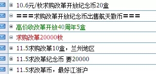 事实上,改革币从设计图出来之后,就从来没被人看好过!但是,改革币从预约那天就开始展现黑马雄姿。预约速度甚至比纪念钞都要快(导致轻敌的小集竟然没有约到,一把辛酸泪),预约率近100%!兑换面世之后,虽然热度一直被纪念钞所压制,但是它的市价却一路上涨,目前卷、盒币求购价在11.5元附近,出售价更是高达12元,涨幅一度超过纪念钞!(为什么说是一度,因为这两天纪念钞也在猛涨)