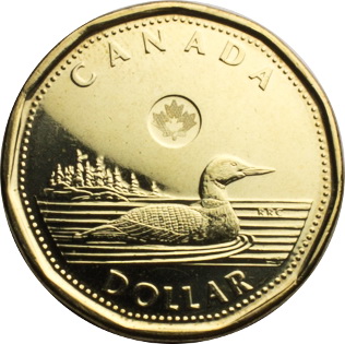 加拿大一加元硬币,通俗地称为“loonie”(因为它描绘了大部分硬币反转时的普通懒人)。