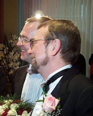 Michael Hendricks和Rene Leboeuf,加拿大魁北克省第一个合法结婚的同性伴侣。 照片拍摄于2004年4月1日。