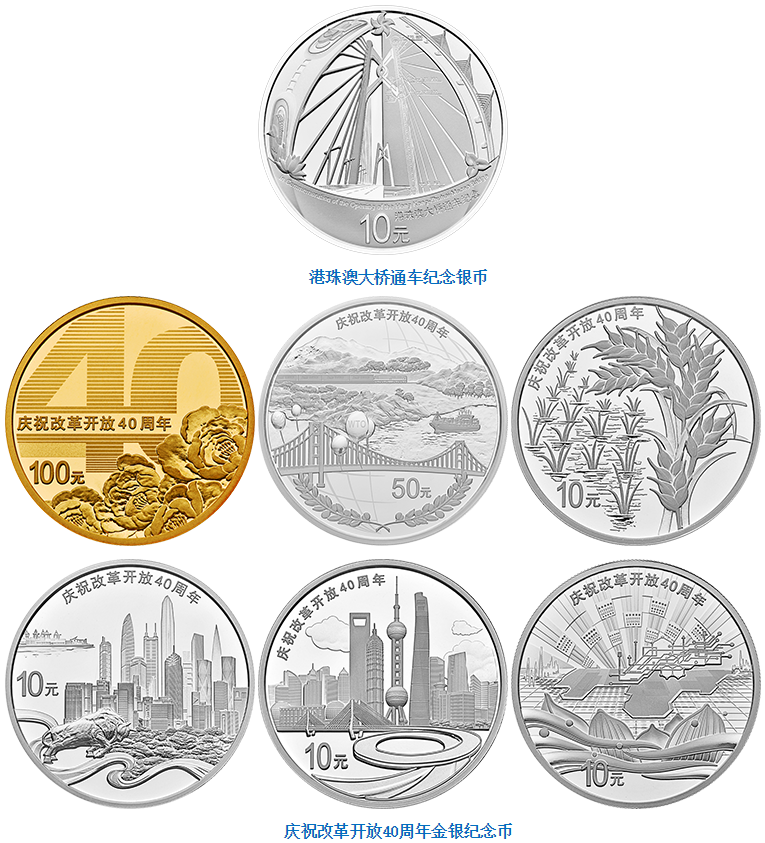 首先,这两个项目与时下最重大的两个历史事件直接相关,将大大提升普通民众对这两套贵金属纪念币的关注度,从而让更多的人认识金银币这种国家权威发行的、颇具观赏和收藏价值的艺术佳品。我们先来看港珠澳大桥通车这个历史事件。港珠澳大桥从2009年12月15日开工建设,到2018年10月24日正式通车,历时近9年。该桥全长55公里,它是“一国两制”框架下粤港澳三地首次合作建设的世界级超大型跨海交通工程,被外媒评为“新的世界七大奇迹”之一,创造了许多世界第一。大桥通车后,从香港到珠海澳门驱车仅需30分钟的车程。它的建成通车对于港珠澳大湾区、泛珠三角区域乃至“一带一路”的建设都有着深远的意义。可见,借助港珠澳大桥通车这个全国、全世界媒体都争相报道的新闻和历史事件,港珠澳大桥通车纪念银币的发行也成为了舆论关注的焦点。另一个历史事件——改革开放40周年,更是受到社会各界的广泛关注,各种主题的庆祝活动接连登场,声势浩大,民众的参与度也较高,而庆祝改革开放40周年金银币的发行无疑是对那段峥嵘历史的最好铭记。相信会有不少人通过这套意义非凡的金银币而喜爱上中国金币的收藏。笔者坚信,只要宣传到位,这两个增发项目一定会在扩大金银币的社会认知度、吸引金银币新的集藏人群等方面起到重要的引领作用。