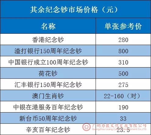 其余纪念钞价格如下