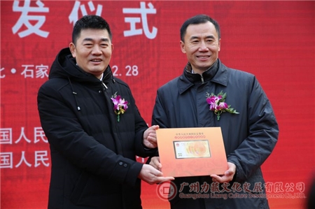首发仪式由人民银行货币金银局韩利卫处长宣布开始,人民银行石家庄中心支行陈建华行长,人民银行货币金银局李会锋副局长、人民银行党委宣传部马林巡视员、中国印钞造币总公司陈耀明副总经理、中国钱币博物馆邵显斌书记分别致辞。随后,人民银行办公厅王均坦副主任向人民银行石家庄中心支行陈建华行长移交J000000001号纪念钞。该纪念钞将在河北钱币博物馆临时展出。
