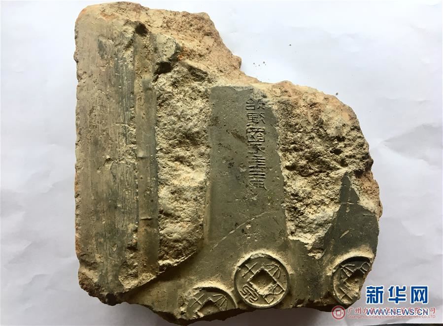 印有铭文“始建国元年三月”的陶制钱范(1月15日摄)。新华社记者 李文哲 摄