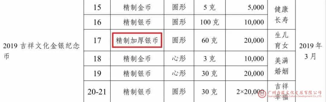 吉祥文化系列,从2015年发行到2019年,也是第一次出现精制加厚银币。众所周知,加厚币是金银币藏家的最爱,被誉为老精稀中的顶级藏品。最有名的1979年国际儿童节浇花1/2盎司银币,加厚币和普通银币其实发行量差距并不是很大,但是市场差价却有70多倍之多!可见加厚币的特殊地位。