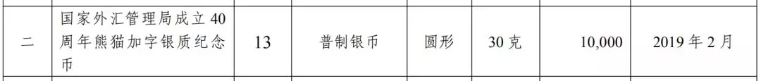 2月,央行还将发行一枚国家外汇管理局成立40周年熊猫加字银币,是普制银币,规格为30克,最大发行量为10000枚。