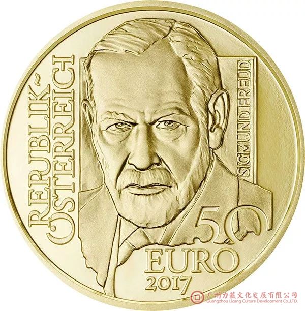2017年,奥地利发行“维也纳心理学派”系列纪念币,系列首枚为“西格蒙德·弗洛伊德”50欧元金币。该币成色为98.6%,重量为7.89克,直径为22毫米,发行量为20000枚。