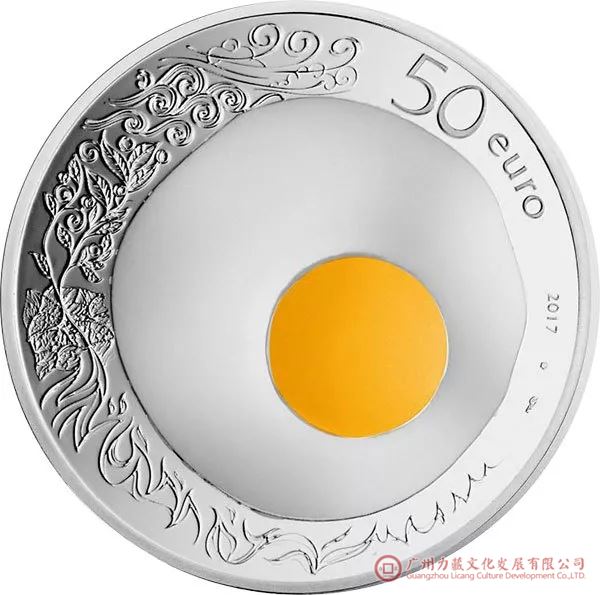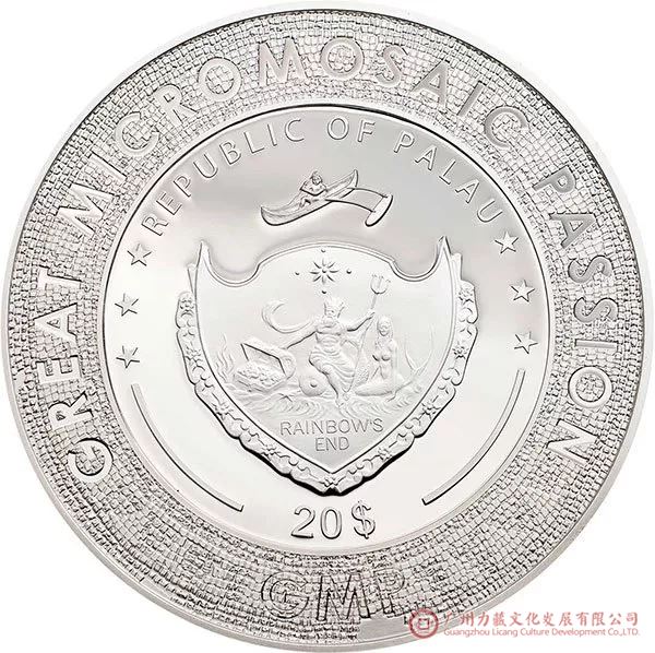 2017年帕劳发行的“维纳斯的诞生”银币采用Smartminting专利造币工艺,完美演绎了微马赛克的成像效果。该币成色为99.9%,重量为93.3克,直径为65毫米,发行量为499枚。