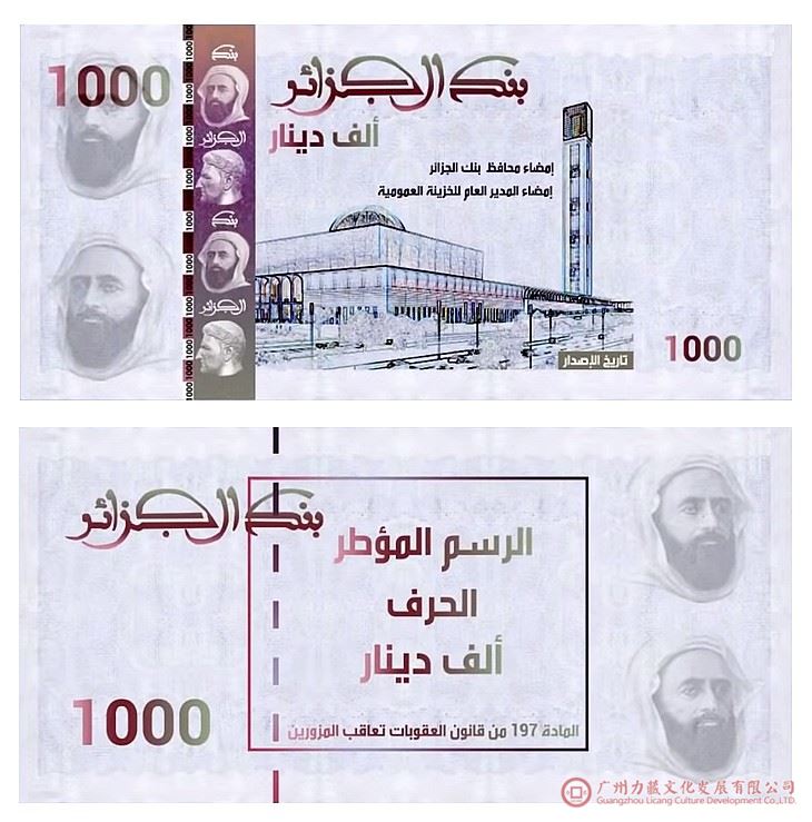 阿尔及利亚银行宣布了发行新设计的500($ 4.24美元)和1,000($ 8.48)第纳尔钞票以及生产新的100第纳尔循环硬币的提议。 在该国官方新闻服务(期刊编号73)上发布的信息详细介绍了从这两个教派开始的新钞票系列的创建,以及发布新的100第纳尔硬币以包括阿尔及利亚电信卫星ALCOMSAT-1的图像。 新闻服务概述了新的500第纳尔音符的注释,主题和主题的描述,该音符专门用于“信息和通信技术时代的阿尔及利亚”,而重新设计的主题则为1,000第纳尔致力于“文化,传统和现代性”。