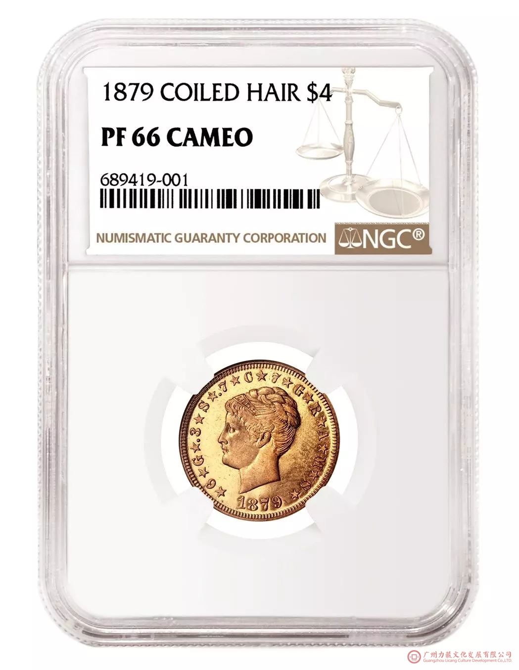 1879年盘发的自由女神“斯特拉”金币,评级为NGC PF 66 Cameo。