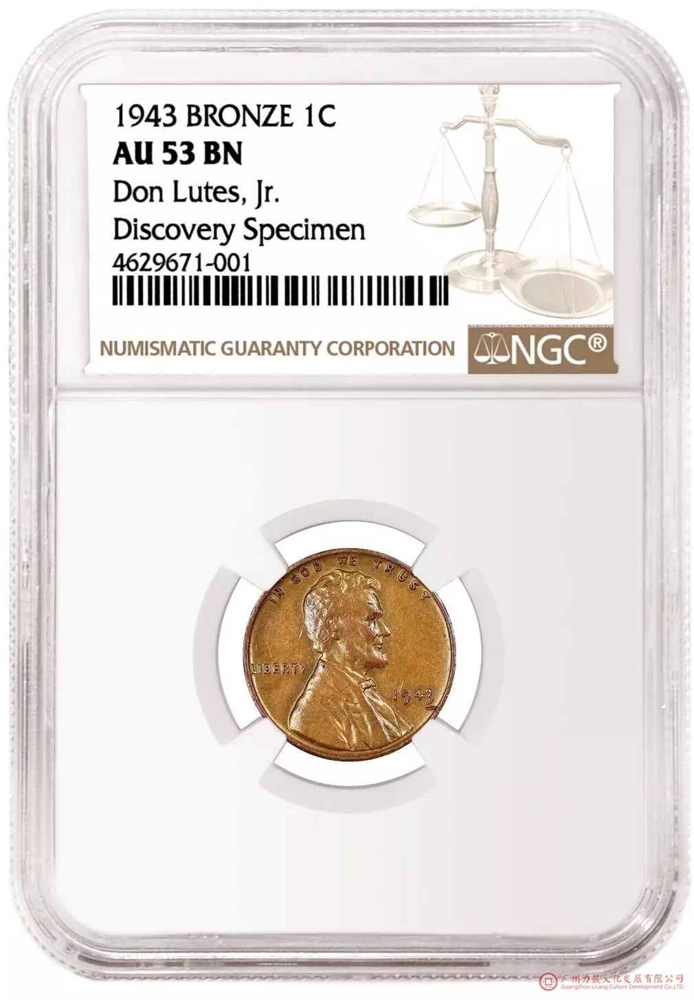 另一枚值得注意的硬币是一枚1943年铜质美分,评级为NGC AU 53,成交价为204,000美元(折合人民币130万元)。NGC将其系谱标注为“唐·卢特斯发现硬币”(The Don Lutes Jr. Discovery Specimen),该系谱以其发现者命名,该币是他于1947年少年时期在学校食堂找回的零钱中发现的。