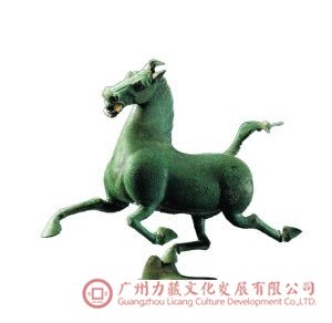 这件名扬中外的青铜工艺珍品,出土后被送到故宫博物院修复,腹内铸造时的泥子早已掏出。因为把泥子掏出来后,它才可以站立,这充分显示了古人的聪明智慧。这匹掉鬃、断尾、颈部满是孔洞的铜奔马经过精心修复不仅将马的奔驰与燕的飞翔的动态表现得淋漓尽致,体现了骏马和飞燕争先的动人瞬间。马踏飞燕业已作为中国旅游的标记,蜚声中外。其宁静致远,以静制动,厚积薄发的民族精神也得以在内敛中体现,在含蓄中发声。