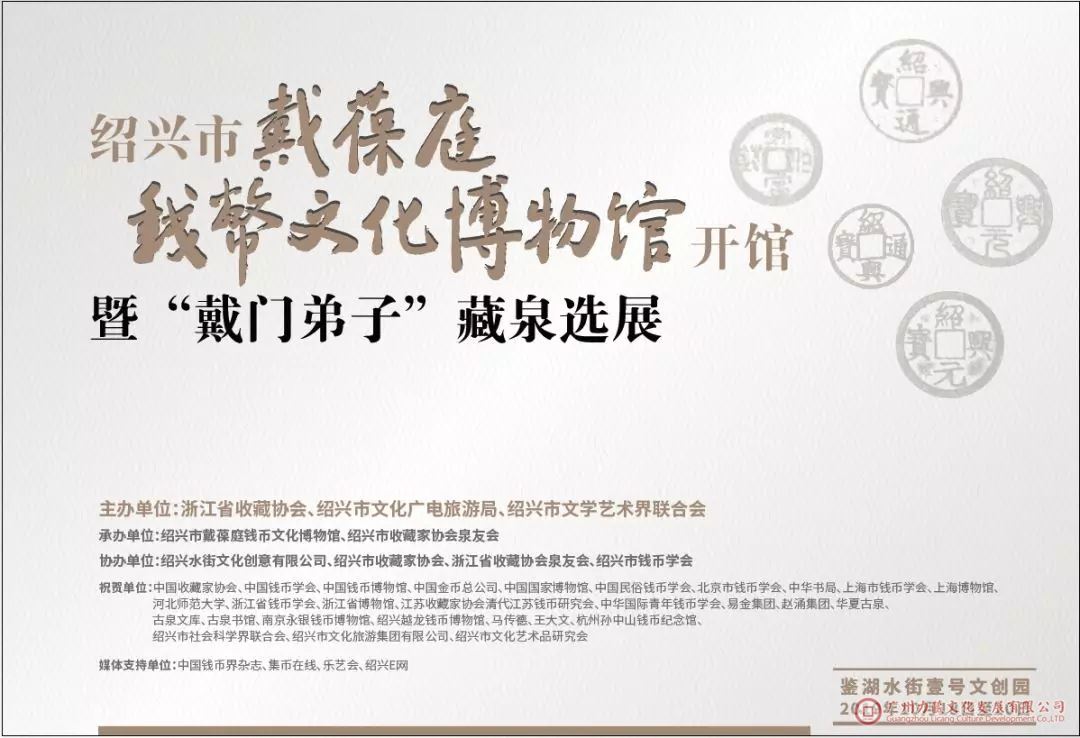 2019年10月18日,绍兴市戴葆庭钱币文化博物馆即将开馆,暨戴门弟子藏泉选展;另外第五届泉友会年会、全国钱币交流大会也将正式开始!