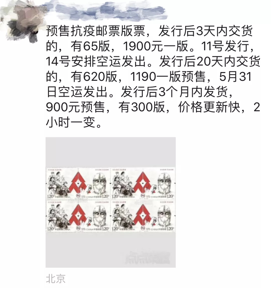 这次的抗疫邮票确实抢手!昨天套票开售、大版开始摇号,到了十点半,2.4元的套票市场价已经涨到了25元/套,涨幅超10倍!