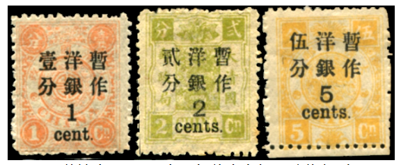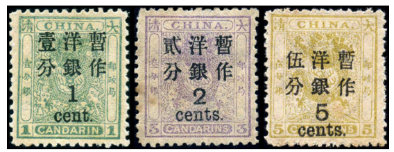1897年2月20日大清邮政官局正式对外营业,其时正值邮资计算单位由银两改为银元,国家邮政在新设计的邮票印成之前,只能利用原有的小龙邮票和“慈禧寿辰”(万寿)邮票作为原票,加盖“暂作洋银”等字样改值后使用。因为加盖所用阿拉伯数字的大小不同,改值邮票有“大字”和“小字”的区别。所谓小字和大字是指加盖面值的阿拉伯数字字号有大小之分,小字为白正体,大字为粗等线体。
