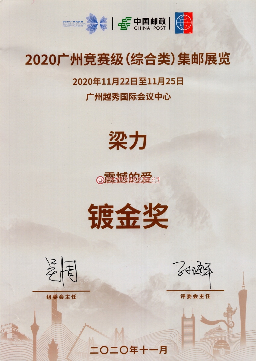 作品《震撼之爱》获2020广州竞赛级(综合类)集邮展览镀金奖